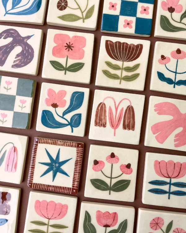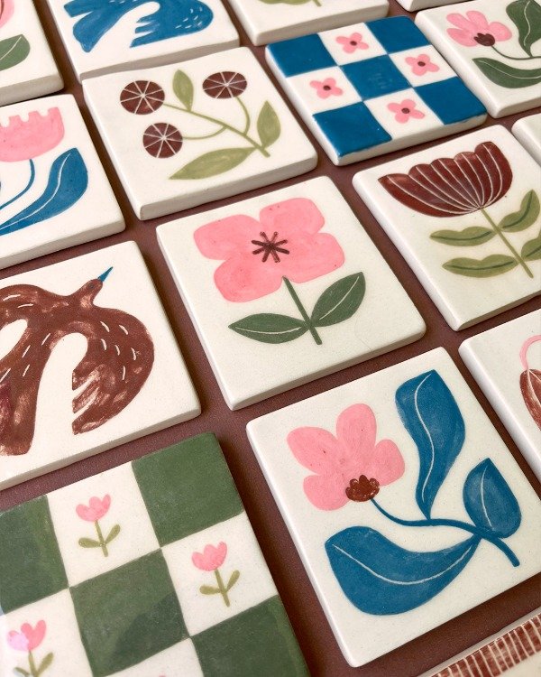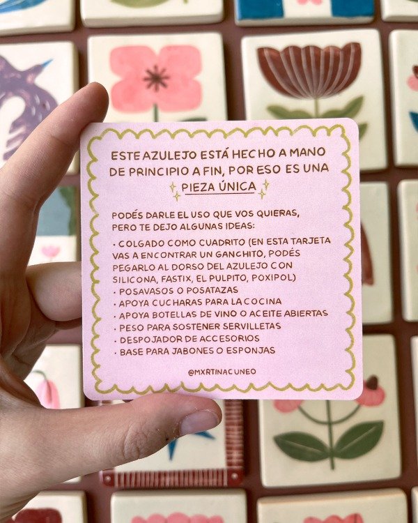 colgado como cuadrito (cada azulejo viene con una tarjeta con un pack de stickers de regalo y un ganchito: podés pegarlo al dorso del azulejo con silicona, Fastix, Poxipol, El Pulpito, etc)